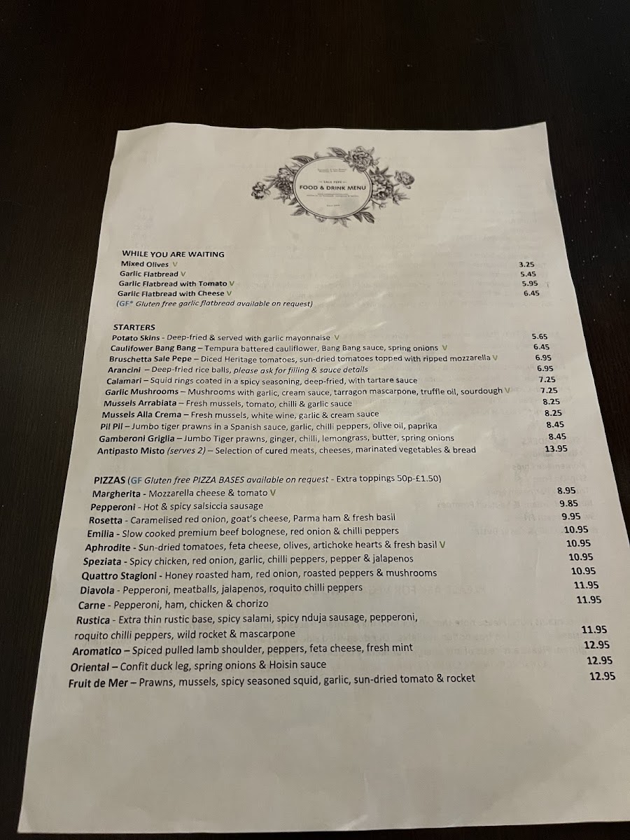 A Warm Taste of Italy: A Review of Sale Pepe, Shotley Bridge Menu